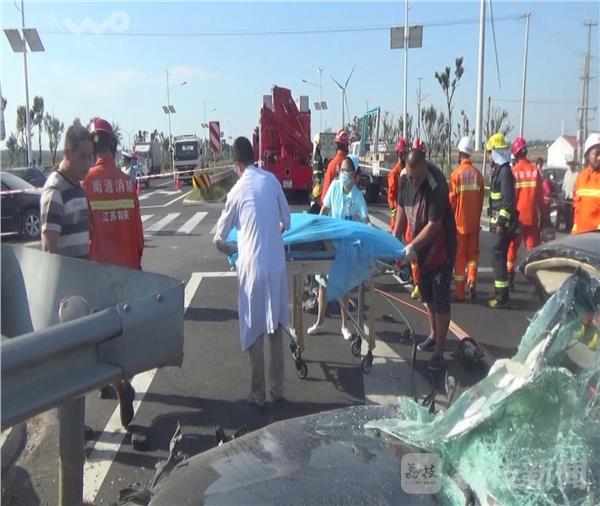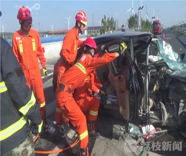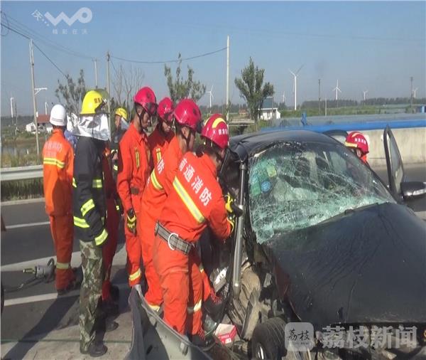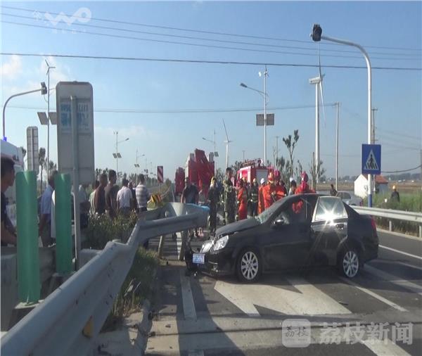 昨天早上7点20分左右,南通市如东县328国道大豫镇,一辆黑色别克与黑色广本碰擦后,撞上了路边的防护栏,造成三男一女被困车中。