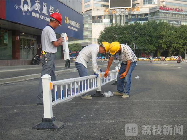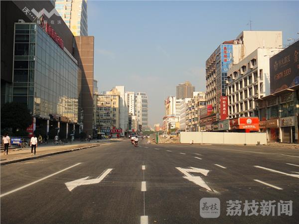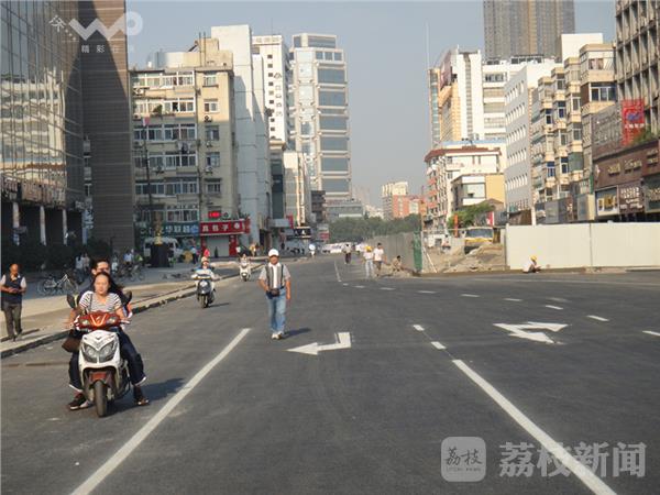 今天(8月31日)早上7时许,荔枝新闻网友在即将通车的湖南路看到,从中山北路至中央路整条湖南路的南半幅路面已经平整,一些交通标志线已经划好,在工人正在安装快慢车道之间的隔离栏杆。交管部门正在调试交通信号灯。湖南路至中央路的围挡已拆除,已拆除的还有湖南路面朝北围挡和狮子桥步行街的围挡。湖南路面朝北的门面已经显现出来,一些勤劳的商家已早早开门在打扫卫生,迎接他们的将是久违了的顾客和大好的商机。