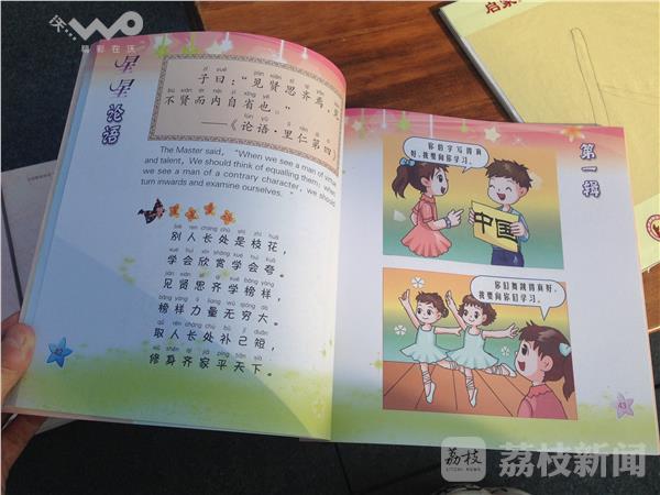 在开学第一课上,180名新生从“人”字学起。嘉宾和老师为孩子点朱砂,还为孩子们送上了入学第一本书《星星论语》。“‘开笔礼’是一年级新生特有的开学典礼,是小学生走进夫子庙小学的第一课”,南京夫子庙小学校长冯爱东表示,希望通过这样的形式,让孩子们在经典的氛围中熏陶,学习很多的知识学养,然后慢慢长大。