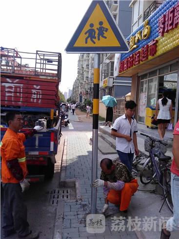 9大队沿江中队民警分别在琅琊路小学天润城小学北校区周边的润浦路和百润路安装了四块警示标牌,并漆划了行人过街斑马线。同时在位于海润枫景小区的金色花蕾幼儿园门口增设了早晚高峰执勤警力,护送幼儿过马路。