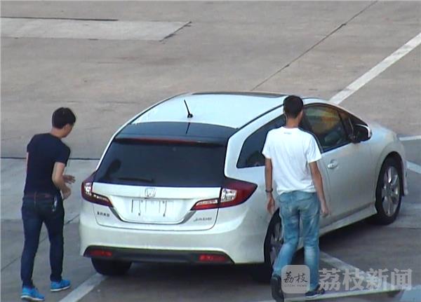 当天中午,徐州交警高速四大队民警通过监控,发现两名男子在将一辆白色轿车停进淮徐高速高作服务区后,两人便开始拆卸车辆前后号牌。