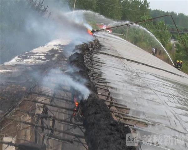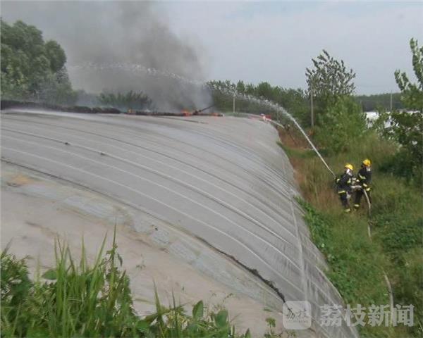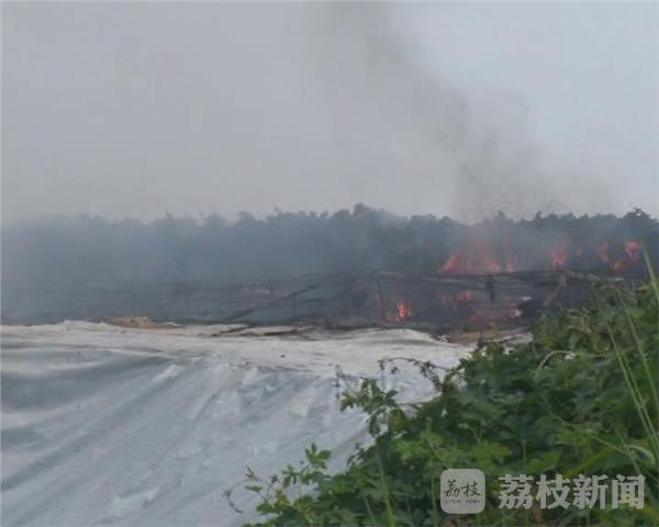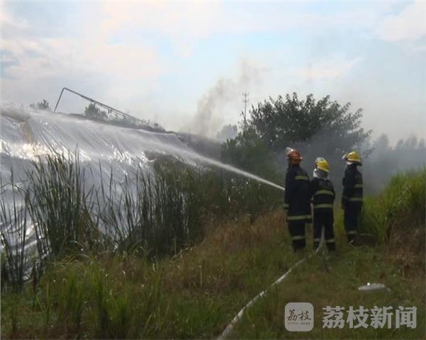 昨天(8月31日)下午三点左右,南京六合区冶山镇一个蔬菜种植大棚突发大火,当地消防部门出动三辆消防车赶到现场处置。长约200米的蔬菜大棚棚顶已经冒起数米高的滚滚浓烟,由于通往蔬菜大棚的道路狭窄,消防车进不去,因此,一组消防官兵忙着架起百米长的水带,另一组消防官兵抬着抽水泵在附近一个水塘里抽水,很快,消防官兵架起三只水枪从两头向大棚中央喷水,半小时后,大火被扑灭。