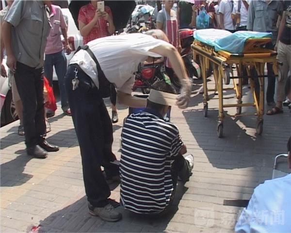 120很快赶至,医生在帮伤者止血并包扎头部后,将其紧急送至附近的长征医院抢救。