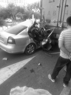 据了解,当时小车本来在中间一股车道行驶,一辆厢式货车停在快车道最外侧车道。附近的住户称,当时听到一声巨响,出来看时发现轿车已经扎进了货车尾部的下方,车顶都被削掉了。