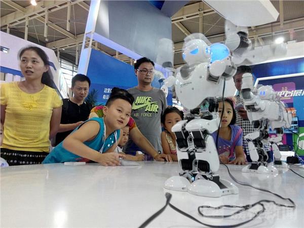 “瞧,真有趣!一组外观萌态的4G智能机器人不仅能走路,还能跳舞呢!”9月2日,第12届中国(南京)国际软件产品和信息服务交易博览会现场亮相,吸引了不少观众体验操作。今天确逢双休,又是正式对市民开放,展厅中机器人吸引了众多学生的目光,大家纷纷走上前观看。“第一次见到会跳舞的机器人,真是太有趣了!”站在一旁认真观看的小朋友笑着说,机器人虽然形体不大,但是动作很灵活,能随着音乐进行“舞蹈秀”。徐福庚 摄