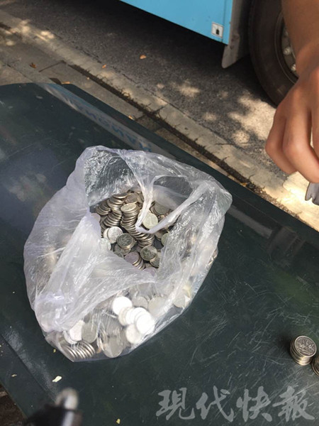 半个小时后,男子从家中带来一塑料袋硬币。民警一看,男子袋中全是一毛的,于是对男子缴纳的罚款进行清点,清点发现共计 508 个一毛,比 50 元罚款还多了 8 毛,于是将多余的钱退还了男子。