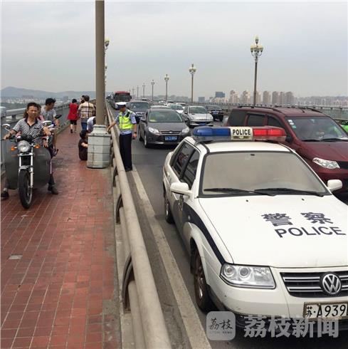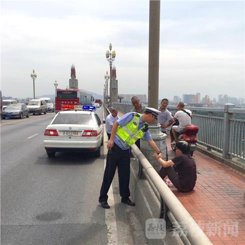 9月4日上午10:35左右,南京交警九大队二中队民警张蓉在长江大桥巡逻时发现一老年男子意欲跳桥,遂立即将其救下并向大队指挥汇报。在稳定该男子其情绪后,将其移送至大桥铁路公安处。