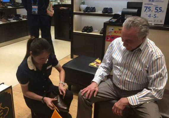 【买买买!巴西新任总统杭州逛街 试穿皮鞋踩踩当即买下】