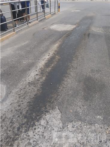公交车驾驶员“我们只能慢一点,这种情况很长时间了,也补过,但是很快就坏了,就是公交车压的。”