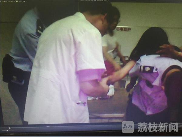 9月3日晚上8点左右,靖江市东兴派出所接到报警称:辖区内某村一女子要自杀。接警后,民警迅速赶往现场。民警到现场发现,女子手腕被割伤,并大量出血,女子情绪激动,一直哭喊着要见丈夫,民警果断处置,强行控制该女子,对伤口做了简单的止血处理后,将女子背上警车,送到医院救治。