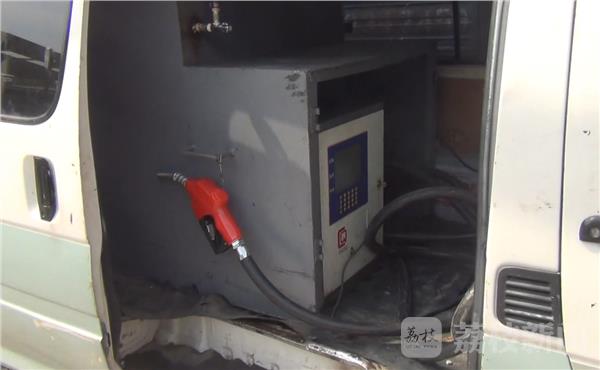 打开后备箱车内,车内是一个大铁箱子,对此驾驶员解释说烤红薯的烤箱,不过民警怎么感觉都不对,于是责令驾驶员打开侧门。一打开侧门,里面的加油枪立即暴露出这个铁箱子的真实身份,面包车内拉载的竟然是一个加油机,铁箱子其实是一个储油罐。