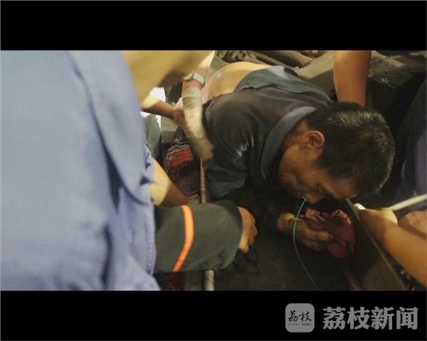 昨天下午1点多,苏州张家港保税区恒隆钢管厂内,1名工人被钢管穿透身体,情况危急。经查,钢管从腹部右侧贯穿至右臀部,工人趴在台子上无法动弹。医护人员先给他输液,维持生命体征,消防官兵破拆钢管,10分钟后工人获救被抬上救护车。工友说,当时钢管矫直机正在运作中,该工人从中间走过,不慎被钢管贯穿腹部,机器自动停止,工友报警求助。