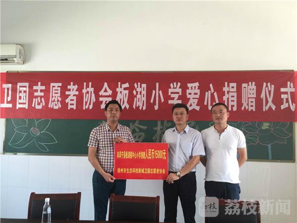 9月9日上午,“中国好人”、扬州生态科技新城卫国志愿者协会会长刘卫国和4名志愿者一行,从扬州赶往盐城阜宁县板湖小学,为受灾地区的30名贫困学生每人送上500元善款。盐城“6、23”特大风雹灾害发生的第二天,刘卫国就带着志愿者赶到灾区支援,向灾区人民伸出了援助之手。
