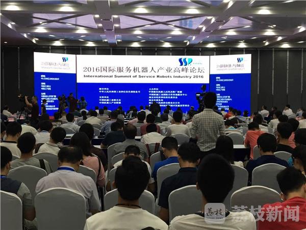 2016年9月10日,“2016国际服务机器人产业高峰论坛”在南京市国际博览中心3号馆举行。本次高峰论坛由中国工业和信息化部装备司、中国机械工业联合会、中国机器人产业联盟、中国服务机器人应用及推广联盟、中国机械工业国际合作咨询服务中心、南京市经济和信息化委员会、南京市商务局、南京市人民政府会展业办公室、南京市麒麟科技创新园开发建设管委会共同组织举办,旨在推动我国服务机器人产品的健康发展,探讨最新技术趋势及市场热点,为中国服务机器人行业提供路径指引,促进产、学、研、金融、销售、用户之间的互动交流。荔枝新闻记者在现场看到,本次论坛由南京市经济和信息化委员会梁洁副主任,中国机械工业国际合作咨询服务中心主任、中国服务机器人应用及推广联盟秘书长周京明等共同主持,现场参会人员达6007人,分别是服务机器人及智能产业界的政府官员、专家学者、龙头企业或行业小巨人企业、投资机构、专业买家、专业院所、相关媒体等,聚集了服务机器人研发机构、核心零部件供应商、服务机器人制造商,系统集成商、用户、投融资机构等业界精英。