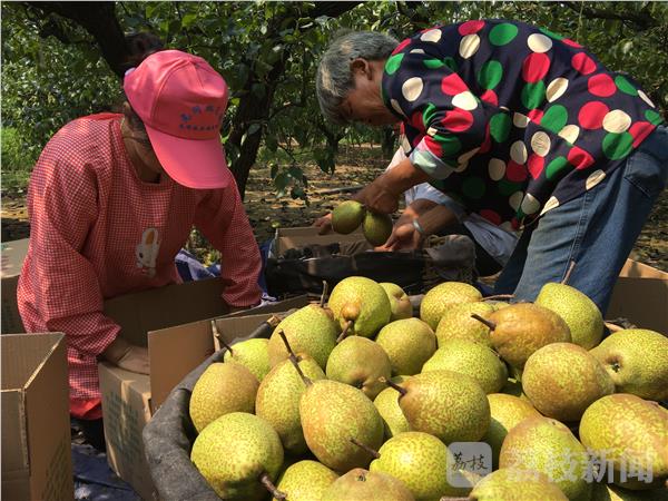 据介绍,盐城西郊的龙冈果园面积近万亩。每年春季,满园粉红的桃花、洁白的梨花,吸引了苏中苏北地区不少居民前来赏花。到了金风送爽的秋天,梨树的枝桠、叶片下挂满了沉甸甸的果实,这时又吸引来各地采购的客商。一位果农告诉记者,今年由于持续干旱,梨子的果形不及往年大,大多数在每只半斤到七两之间,但是特别甜,口感好,也比较畅销。