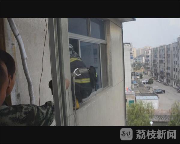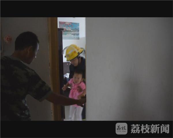 昨天下午14时许,泰兴市119指挥中心接到群众报警,辖区通江路南苑小区5楼一住户家中两岁小孩被反锁在房间里,房门打不开了,接警后当地消防立即调官兵到场处置。消防官兵赶到现场,听到房间里孩子哭闹的厉害,情况比较紧急,未避免发生意外,现场指挥员让妈妈在门外安抚孩子的情绪,一边安排一名战士穿戴好个人防护装备,系上保险绳从房间的另一侧窗户跳进房间里。随后,该名战士从里面将反锁的房门打开,将小女孩抱出送到妈妈手上。