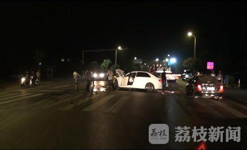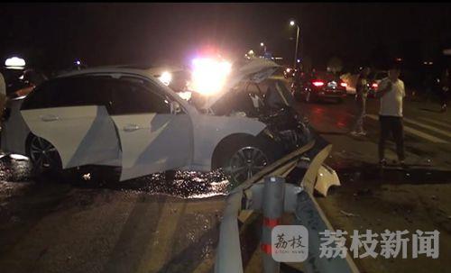 9月11日晚上9点钟左右,在省道226线射阳县凤凰加油站南侧的T型路口处,一辆沿226线由北向南的白色奔驰轿车不知什么原因,突然方向失控,迎头撞上路中央的钢质隔离护栏,巨大的惯性使轿车旋转九十度,一辆同方向行驶的汽车因避让不及,与奔驰轿车的尾部发生轻微碰刮,事故导致奔驰轿车上的三名驾乘人员不同程度受伤,车辆损坏严重。