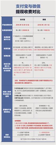 今年3月,微信已经开始对用户提现收取0.1%的手续费,每位用户累计享有1000元免费提现额度。支付宝调整以后,同样收取0.1%服务费,不过,个人用户可以累计享有2万元基础免费提现额度。