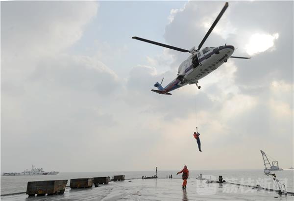 南通市水上搜救中心接到险情报告后,迅速下达了一连串救援指令,调派了附近水域的海事、渔政、海警、渔船等救援力量迅速前往现场展开救助。江苏省水上搜救中心迅速协调交通运输部东海救助局专业救助船和东海第一救助飞行队直升机赶赴现场参与救助。海、陆、空三方救援力量短时间内集聚于事发水域,一场生命与时间的赛跑就此开始。
