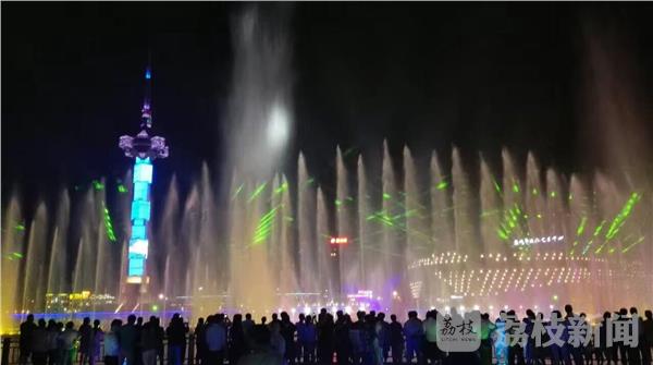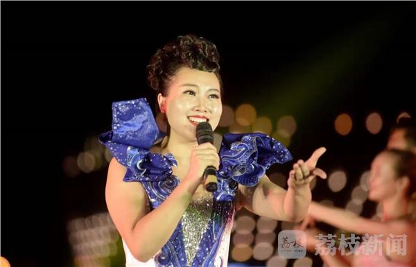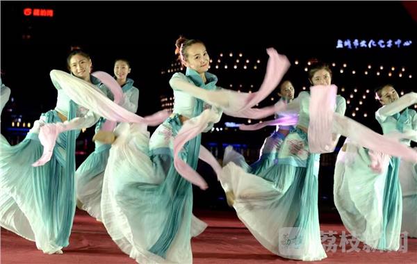 喷泉随着音乐变幻出不同的景致;水上舞台上歌声嘹亮、舞姿蹁跹,盐城市歌舞剧院正在表演舞蹈《采薇舞》,并启动了这个市秋季惠民专场演出的序幕。