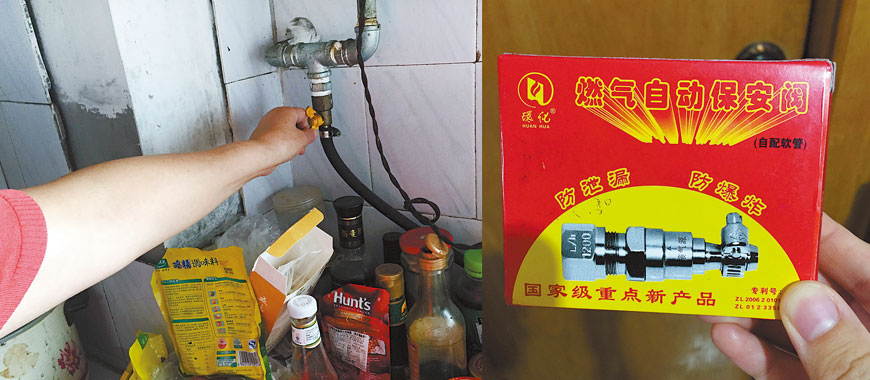 检查完燃气设备后,这个工作人员说李女士家的燃气手动阀存在安全隐患,让她再安装一个保安阀,更换一个防爆管,需要399元。他还拿出了一些收据和合同,说小区里好多市民都已换上了这种保安阀。