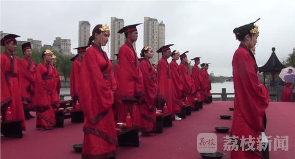 2016年9月16日上午9点,江苏省淮安市清江浦里运河石码头旁,20对新人身着汉服、拜行古礼,参与了一场终生难忘的汉文化集体婚礼,原汁原味地再现了千年古老的婚俗仪式,现场吸引了许多淮安市民观看送祝福。