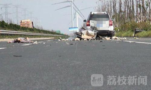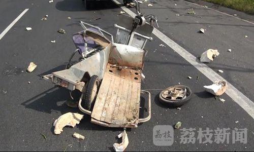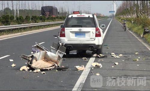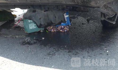记者赶到现场时,事故处理民警已经封闭了整个由南向北的三股车道(两股机动车道和一股非机动车道),过往车辆借道缓慢通行,事故处理民警正在对现场进行勘查,一名中年妇女仰面躺在由南向北的快车道里,已经没有了生命迹象,北侧约二三十米远的行车道里,一辆小型的电瓶三轮车已经散架,车轮的合金轮毂变形,车厢挡板脱落,北侧不远处,一辆白色的汽车停在行车道里,车前保险杠断裂,引擎盖隆起变形,车头下面还卡着一件衣服和三轮车的电瓶,在死者南侧的约三四十米的路面上,电瓶三轮车驾驶员的一条头巾抛在路面上,车上装载的冬瓜等物品散落一地,占据了整个由南向北的车道。面对记者的采访,肇事车辆驾驶员辩称,他开车子的速度并不快,因为是刚过路口,大约在五十码左右,电瓶三轮车在快车道里突然变道,他是赶不上刹车才发生碰撞的,由于没有将刹车踩死,所以就将电瓶三轮车带到前面这么远了。