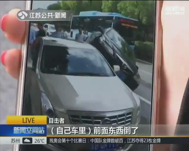 目击者表示,当时听车主说,后面这辆黑色车子前面东西倒了,司机他去扶一下,谁知就开到人家车子上面了。