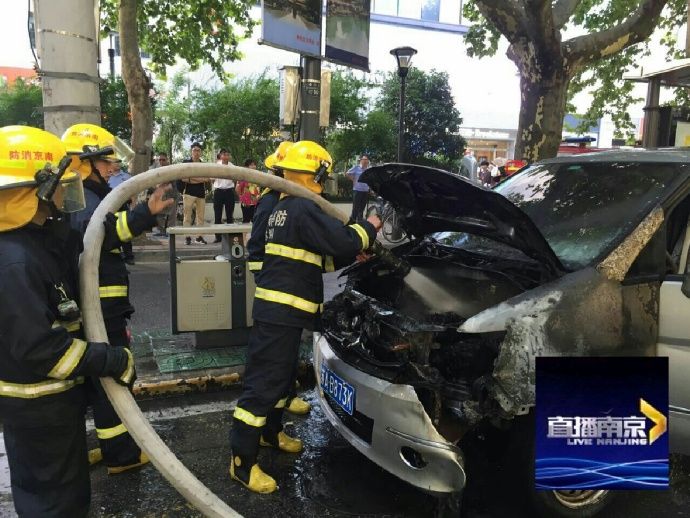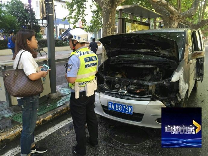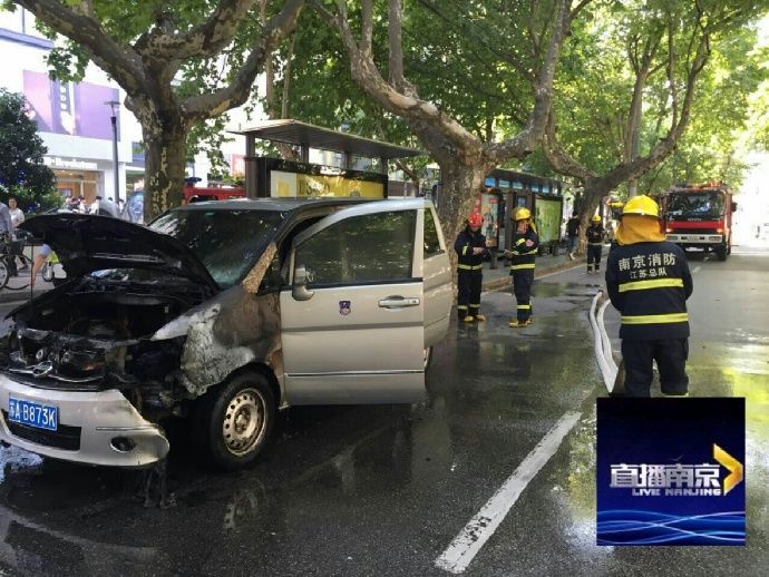 #南京突发#【夫子庙水游城前 小车自燃多位司机伸援手】今天上午9:40在秦淮区中华路水游城门口,由南向北一辆面包车突然发出一声巨响后引擎盖下冒出火苗,司机陈先生向路过司机求援,三位私家车司机与一位公交车司机用灭火器帮助灭火,无奈火势较大控制不住。报警后119、122迅速到场,消防用水枪将明火扑灭,大约10:20交警调来清障车,道路逐渐恢复通畅。据了解这辆购于2013年的车,因火势较大,发动机被烧毁,庆幸没有蔓延到整个车身。司机陈先生对帮助灭火的好心人表示感谢。