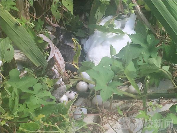 提起南京六合东沟,不少观众都知道,那是乳鸽之乡。不过,今天(9月20日)上午,当地居民联名反映,有养殖户将死鸽子随意乱扔,他们担心传播疾病。在现场,居民用竹竿将草丛扒开,大量的死鸽子便显露出来,散发出腐败的恶臭。居民说,这个养殖点紧挨居民区,死鸽子这样被随意丢弃在水塘、草丛里,没有经过任何处理,这让他们非常担心。由于天热,气味难闻,连门窗都没法开,严重影响他们的生活。