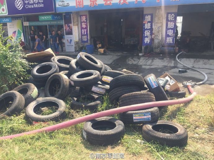 #南京身边事#【江心洲一汽修厂失火】今天中午12:30,南京江心洲中棚桥旁一家汽修厂内浓烟滚滚,附近居民报警,附近街道工作人员用灭火器灭火。消防人员赶到现场扑救,约一小时后大火被完全扑灭,所幸没有造成人员伤亡。起火点位于修理厂约30平米的院内,堆放着新旧轮胎。警方正对起火原因进行调查。