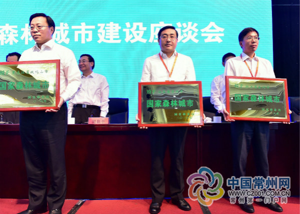 常报全媒体讯 在昨天召开的2016全国森林城市建设座谈会上,国家林业局正式授予我市“国家森林城市”称号,市长费高云在授牌仪式上接受奖牌。