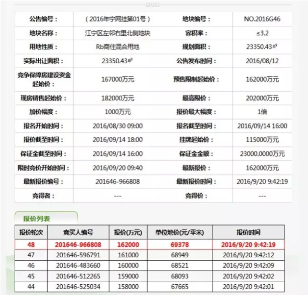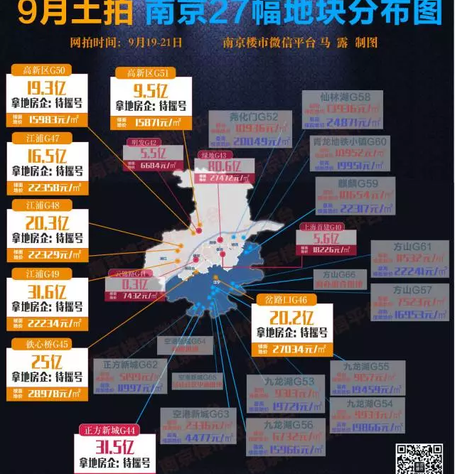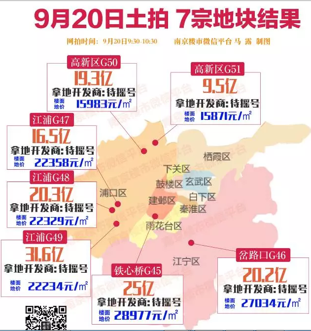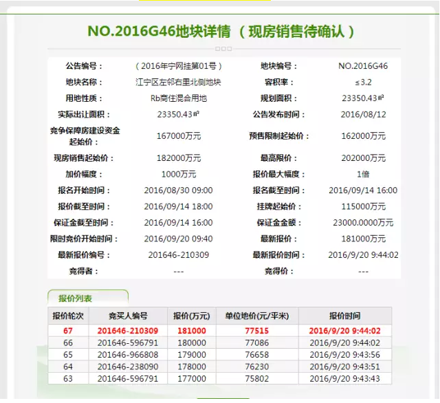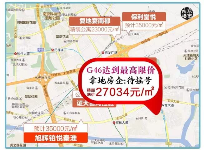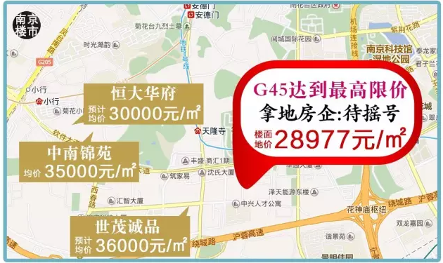 G45地块,开拍3分钟,秒过20000元/㎡地价,达到现房销售待摇号确认阶段,拍卖还没结束已经成为江宁地王!