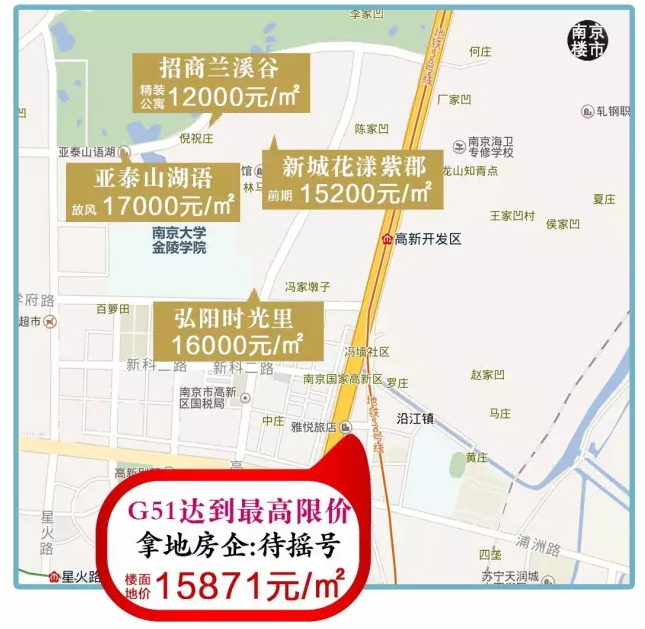 高新区G50、G51地块,最高限价接近16000元/㎡,与目前周边房价持平。