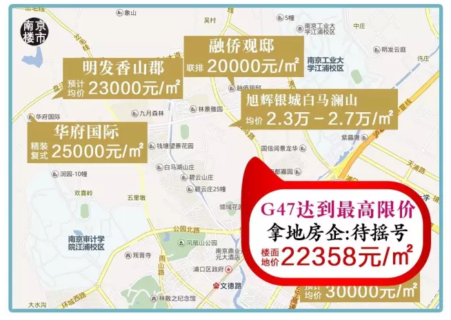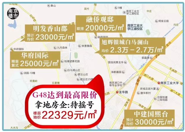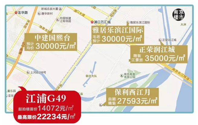 江浦G49地块,最高限价高达22234元/㎡。地块紧邻宁合高速,东侧2公里为南京青奥公园,又是一轮争抢热潮。