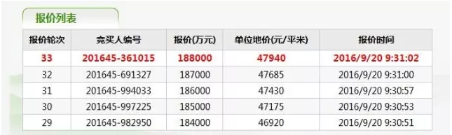 【9:32】G45开始竞拍,一上来房企就穷追猛赶,1一分钟的时间已经刷到33轮。