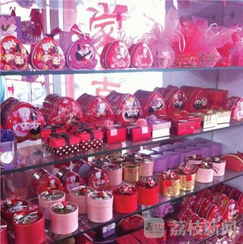 荔枝新闻记者看到,喜铺店里货架上,一个个造型精致、颜色喜庆的喜糖小礼盒被放在了显眼的位置。中式的、欧式的、韩式的,一应俱全。据店主介绍,现在年轻人来选购喜糖不仅注重内在实质,而且更注重喜糖的“外衣”,选择一款精致洋气的礼盒不仅有面,而且精致的小礼盒,大家吃完糖果也不会舍得扔掉,可以摆在家里面当收纳盒,不仅美观而且环保。礼盒今年流行的比较多,比如像“爱那么任性”还有那个“百年好合”,名词比较好一点的,今年流行比较好的巧克力好时、德芙,就是欧式的也比较多,好看的盒子比较多一点。