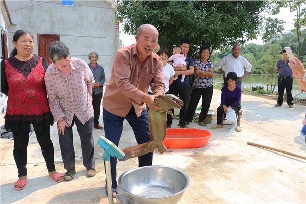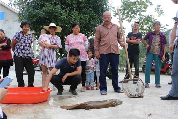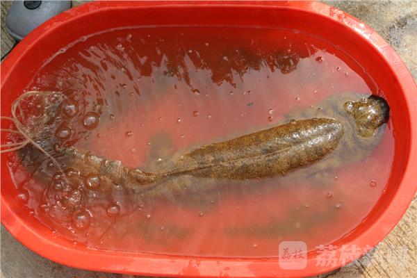 今天上午,句容天王镇戴庄村一村民意外捕获了一条12斤多重的娃娃鱼,得知可能是国家二级保护动物之后,及时与村干部和当地渔政部门取得联系,主动上交并由渔政部门送往专门的养殖基地进行保护。