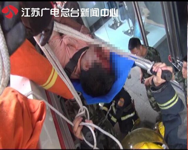 经过15分钟的紧急破拆,消防人员发现,广告牌里果然蜷缩着一个男子,身体一动不动,而鲜血正是从他的身上滴落的。消防人员随即沿着6米拉梯抬着担架上去救人。无奈广告牌内部空间狭小,担架根本无法完全伸展。官兵们只能另想办法,让抢险救援车驾驶员将车开到广告牌的下方,消防官兵爬上救援车顶展开施救。