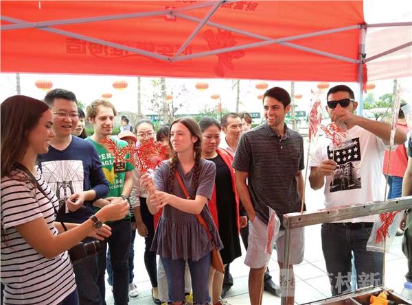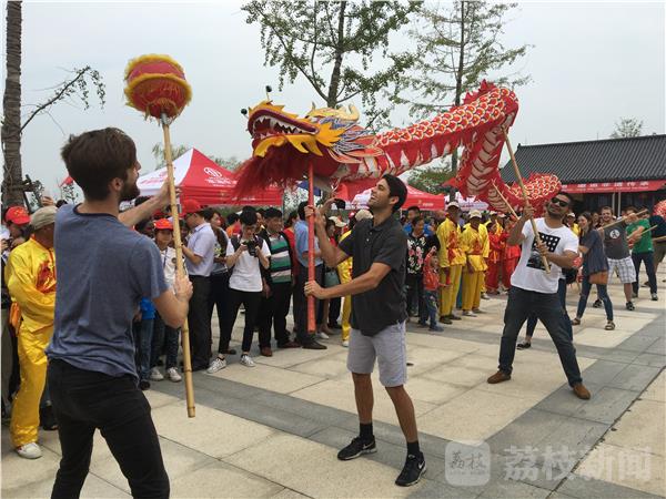 9月24日至25日,由省政府新闻办主办的“洋眼看江苏”活动走进水乡盐城建湖县,来自美国、英国、俄罗斯、乌干达等11个国家的24位外籍友人,参加以“水乡建湖行,走进湿地邂逅非遗”为主题的活动,与当地居民精彩互动,亲身体验舞龙表演以及糖画、剪纸、羽毛画等的制作,观看杂技、捕鱼捉蟹等表演。