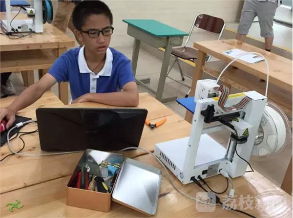 在金陵中学河西分校的机器人3D打印室里,孩子们以Arduino为平台,搭建硬件、检测与控制电路,然后编写代码控制机器人的行为和动作,涉及的教学项目有智能LED、智能风扇、智能小车等。在智慧教室,同学们甚至无需携带纸笔,通过专门的写字板,就能够将内容同步到讲台的电脑设备上,而纳米黑板中间的显示屏可以随时选取和展示学生的作品,同学们讨论得出的创意以及最终的成品,都能够在智慧演讲室里进行展示。