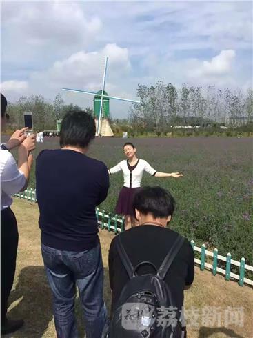 2016年9月26日下午。影视明星还珠格格3“小燕子”黄奕一行慕名来到盐城市大丰区看花海,黄奕在大丰荷兰花海游玩时、对一些喜爱的花草拿起手中的手机进行拍照。
