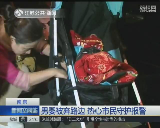 昨天晚上11点多钟,在南京市玄武区后宰门东村路边,路过的市民发现一名男婴被遗弃在了路边,眼看天气将要下雨,热心市民放心不下,一直守护着男婴等待民警前来。