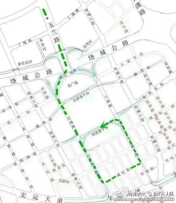 推荐路线3:明城大道(南向北方向)--右转进入金阳东街--直行约150米后左转进入匝道--南落客平台(图中的路线2)
