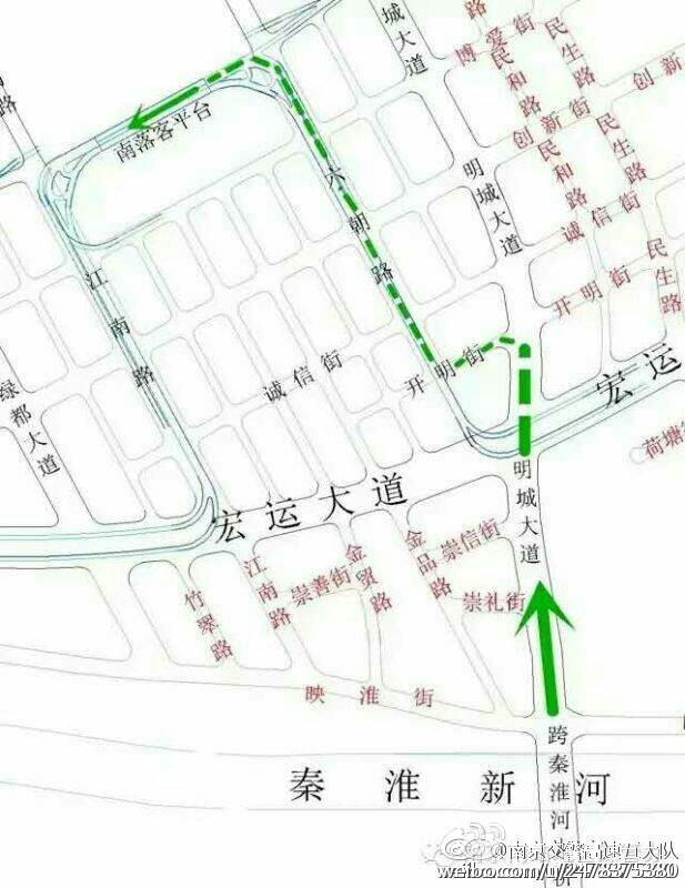 推荐路线7:明城大道--左转进入开明街--右转进入六朝路匝道--南落客平台