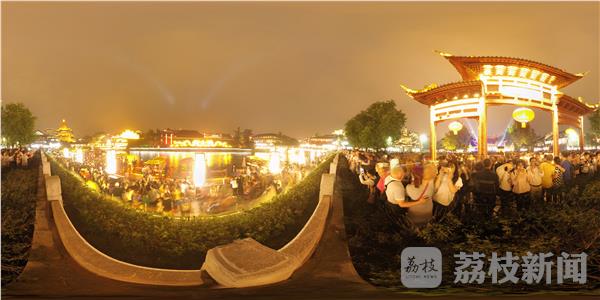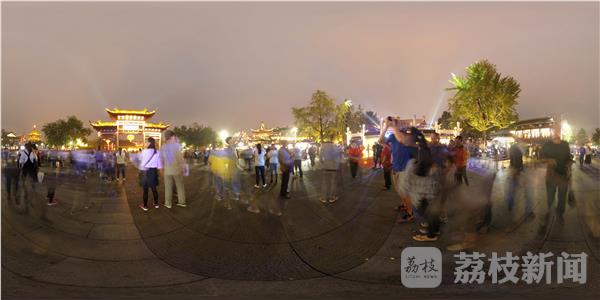 2016年10月1日晚,荔枝新闻网友在南京夫子庙景区用VR拍下景区热闹景象。市旅游委统计数据显示,国庆当天,全市重点监测的七大旅游景区总接待量44.05万人次,总营收259.2万元。其中,夫子庙景区接待22万人次,10月1日傍晚6点,灯光璀璨的夫子庙秦淮风光带观景效果比白天更美,大成殿泮池旁的文德桥上挤满了照相的游客,当天值班的秦淮区旅游局局长姜勇美说,虽然淅淅沥沥下了一天秋雨,夫子庙秦淮风光带仍迎来22万人次游客,逛老门东历史文化街区的游客也有4万多人。