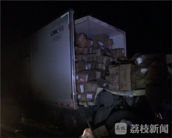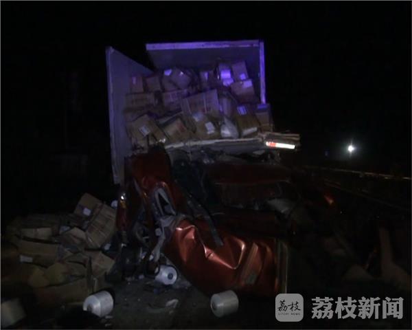 10月3日晚上11点左右,盐城市大丰区G228国道2717公里处发一起追尾交通事故,一辆山东箱式货车疑车速过快,未保持有效安全距离撞上前面的一辆大货车,导致箱式货车的货物因惯性撞向前端驾驶室,造成驾驶室内的二名驾驶员一死一伤。事故发生后被追尾的前车驾驶员立即下车对后面的车进行营救,但因驾驶室变形严重无法施救,随后报警救助,110、119、120迅速的到现场进行勘查和抢救伤者。