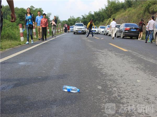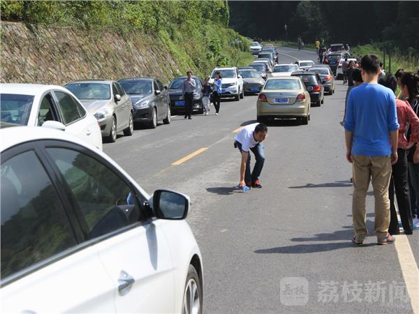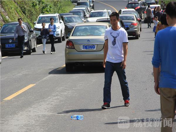 今日(10月4日)上午,江宁谷里附近的神奇怪坡公路上,游人如织,各种轿车、观光车穿行其间。但荔枝通讯员注意到,有些游客由于好奇心,随意用矿泉水瓶在公路上,想体验一下魔幻感觉,却不顾来往车辆易碰撞危险。这行为,让途经轿车司机担惊吓怕。