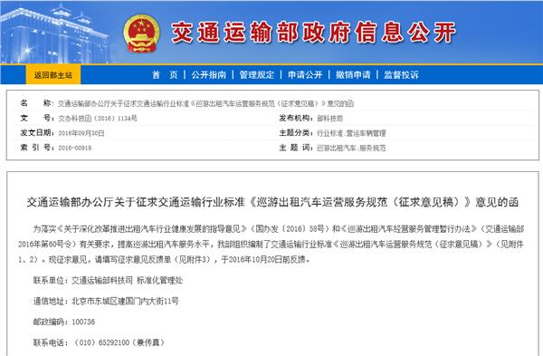 荔枝新闻记者今天(10月4日)从江苏省交通部门获悉,交通运输部就交通运输行业标准《巡游出租汽车运营服务规范》公开征集意见。这份标准规范了巡游出租汽车运营服务的经营者、服务人员、运输车辆、服务站点、驾驶员服务流程、服务评价与投诉处理等。