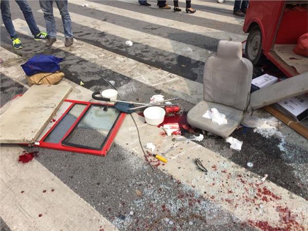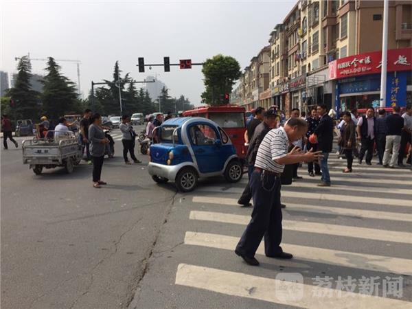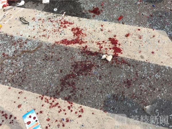 荔枝新闻通讯员在现场看到,在十字路口北侧靠西的地段,一辆四轮电动轿车与一辆红色载客三轮车斜停在路上,电动三轮车已经被撞的散了架,地上散落在许多碎片和杂物,红色三轮车上的音响里还在播放着民间小调,车旁可见有大滩鲜血。